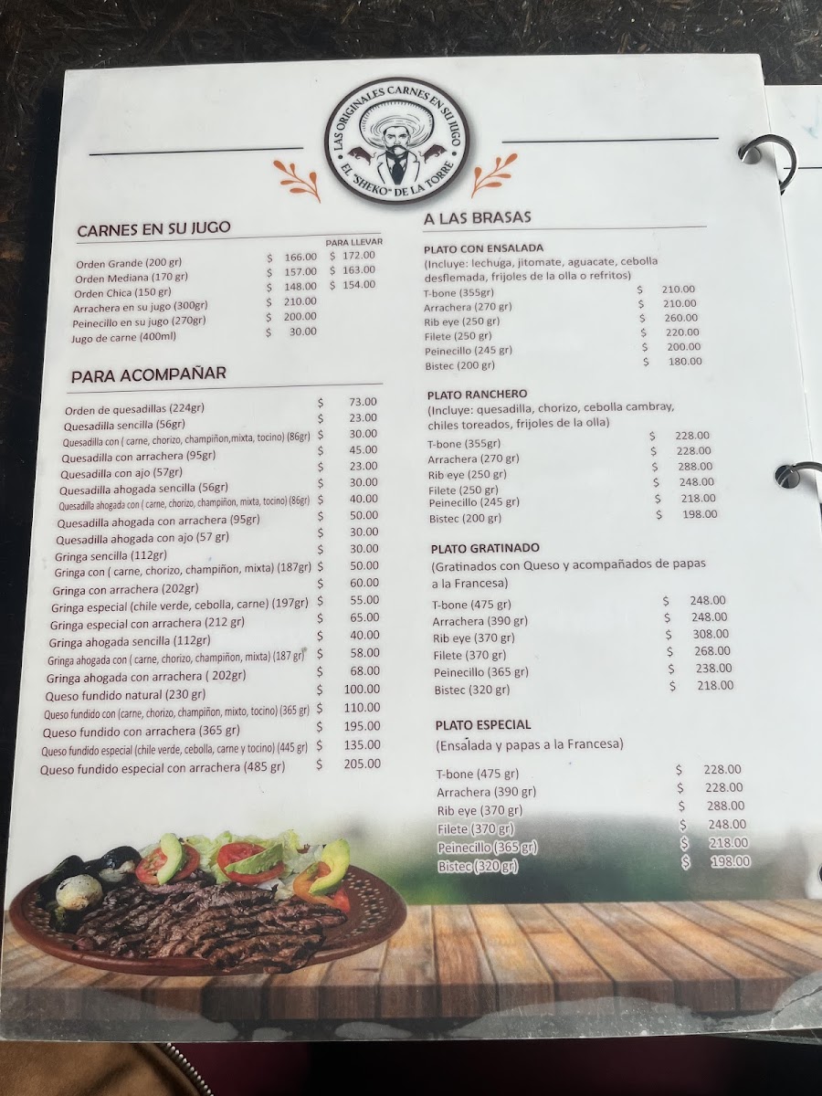 Carne en su jugo 'El Sheko De La Torre' Menu